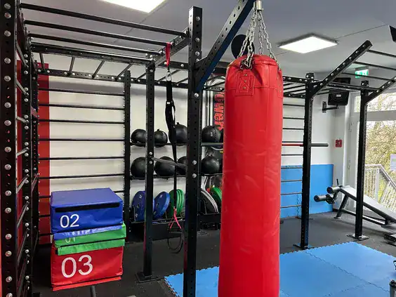 Frische Luft, freier Kopf. Training draußen an Rigs und mit freien Gewichten, direkt angebunden ans Studio.
